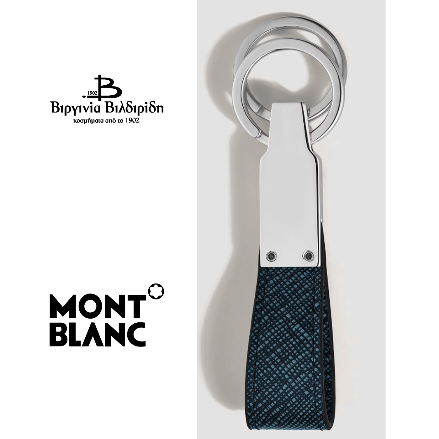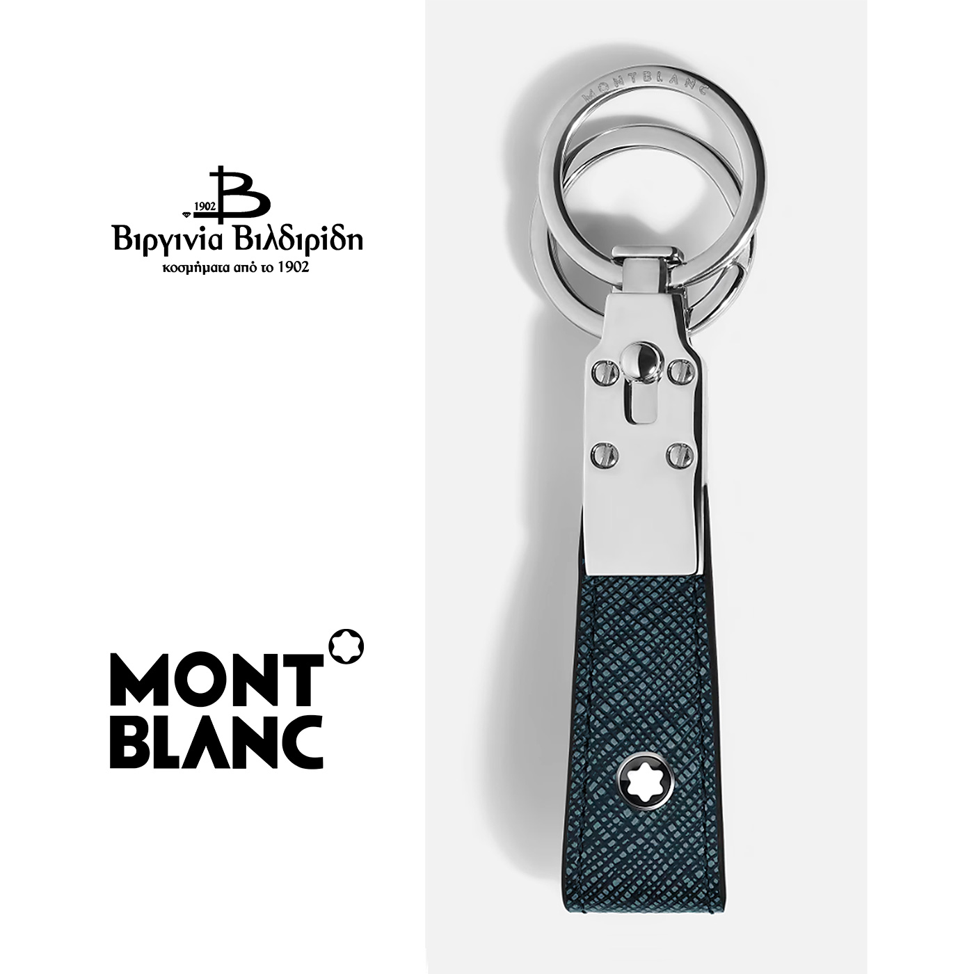 MONTBLANC. Κλειδοθήκη. Ατσάλι και Μαύρο-Μπλε Δέρμα.